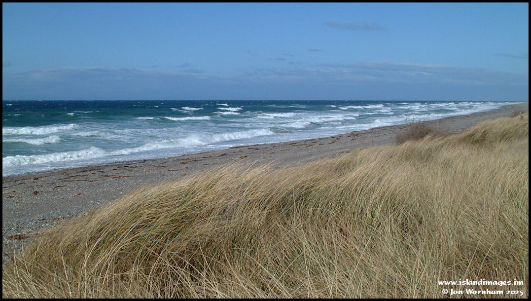 On the north west coast of the island where there are miles of these grass covered dunes behind sand and shingle beaches. It looked like it was a breezy day on the 15th April 2001.