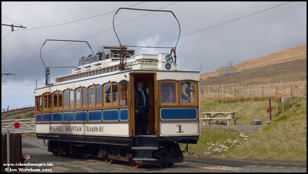 Snaefell Mountain Railway Car No 1 stands at Bungalow Station on the 1st April 2014. The line had been announced at a meeting in January 1895 and incredibly opened for business in August of the same year!
