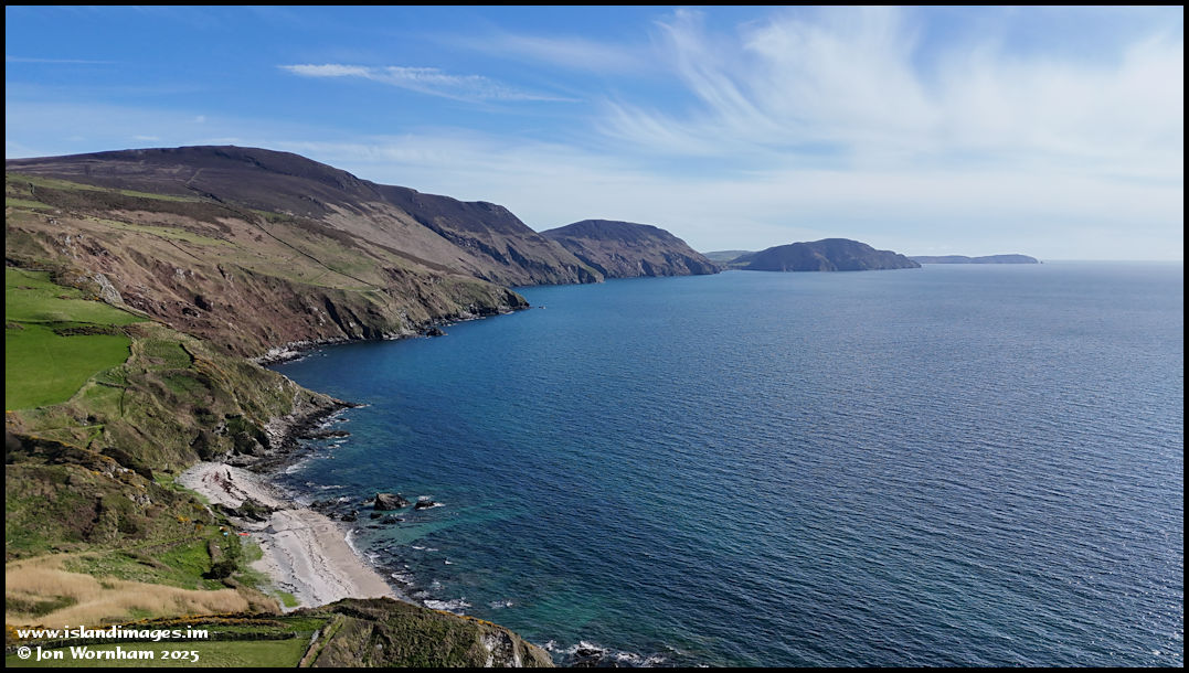 Moving the camera angle to look along steep slopes of Cronk-ny-Arrey-Laa, then to Bradda and the Calf of Man.