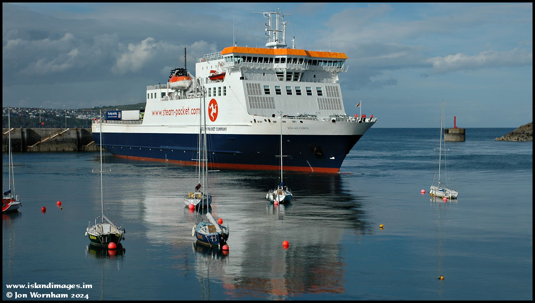 When you live on an island, ferries are an important part of your life! Here the Steam Packet's 'Ben my Chree' manoeuvres in Douglas harbour after arriving from Heysham, England on the 24th May 2006.