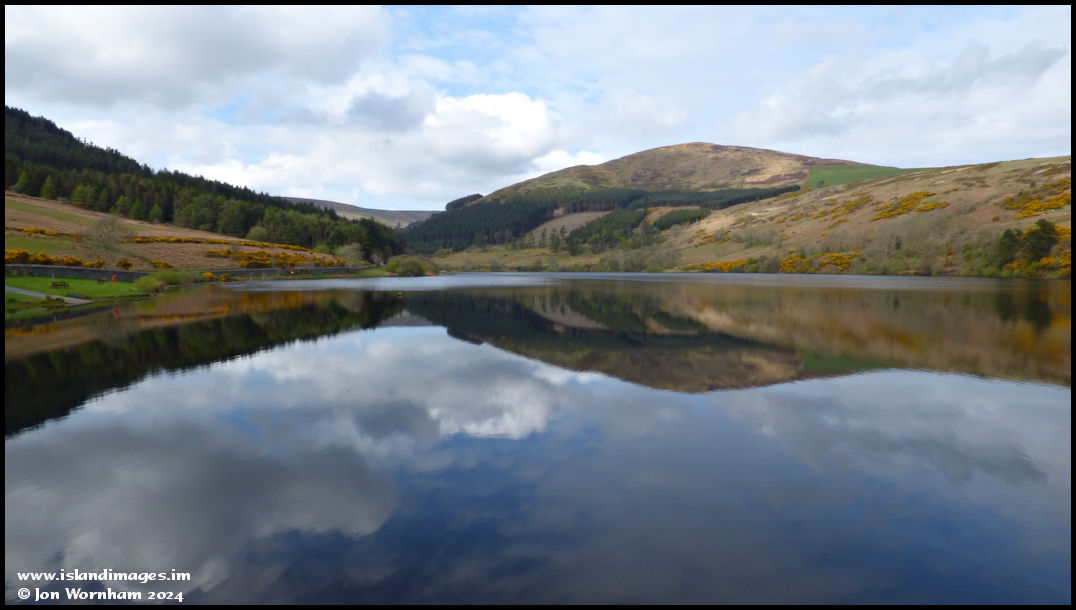 A very calm day on the 5th of May 2015 at Injebreck Reservoir giving an almost perfect reflection of Carraghan hill.