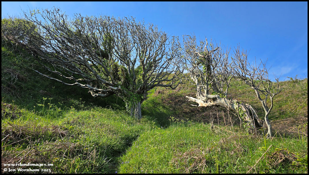My 'path through the long grass' heading up to the Marine Drive and passing these distinctive trees.