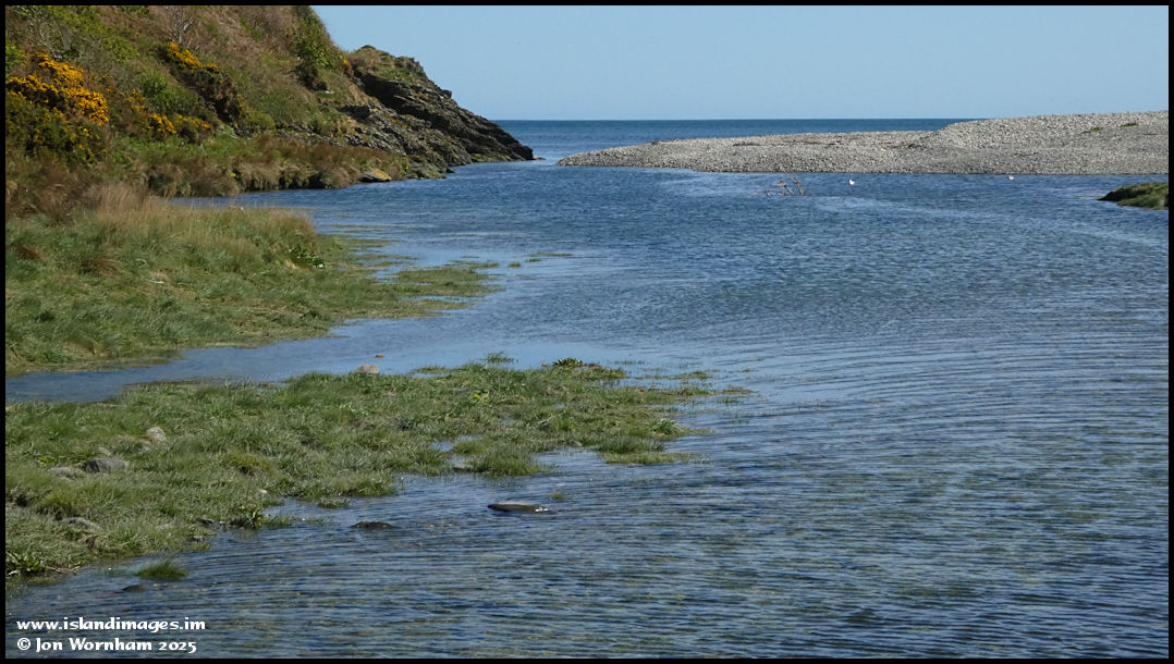 After emerging from the wooded land and at the back of Port Cornaa. It's high tide and the lagoon is full.