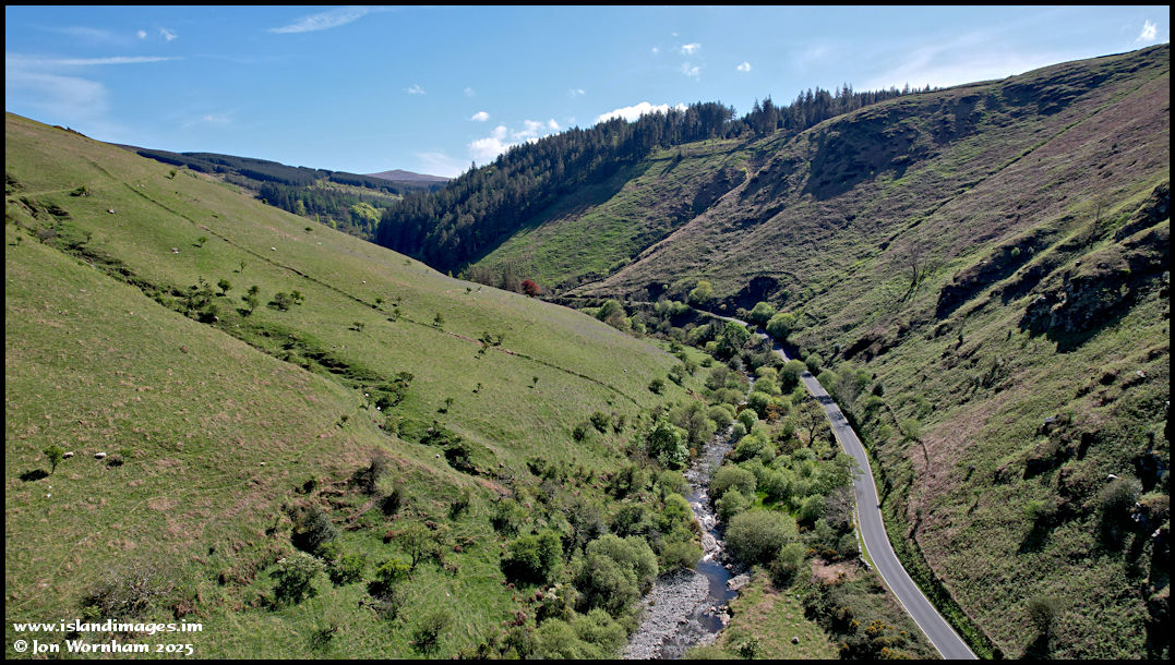 Just airborne and a shot looking north along Sulby Glen. There is a slight tinge of blue on the hillside around the middle of the picture but I've seen it way more impressive!