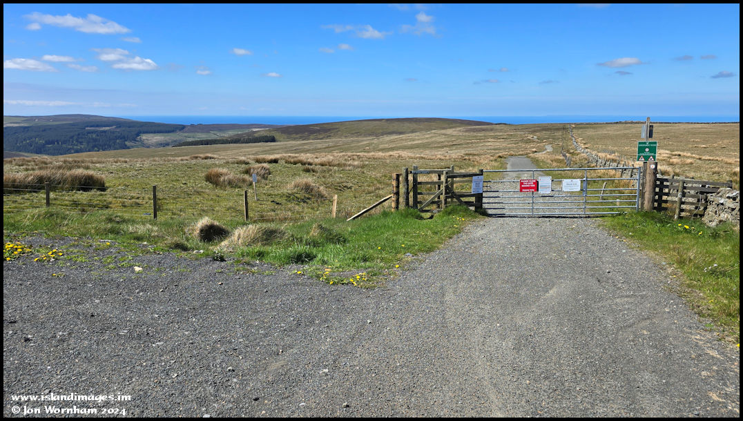 Start of the walk at Mountain Box. I'm going to be following the green lane towards Sky Hill before branching off down to the left to find Block Eary. The rounded hill straight ahead is Slieau Managh which is my ultimate destination.