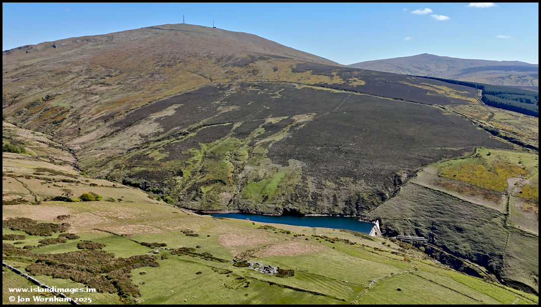 With the little unknown ruin in the foreground again, we're looking across Block Eary Reservoir, with Snaefell rising behind.