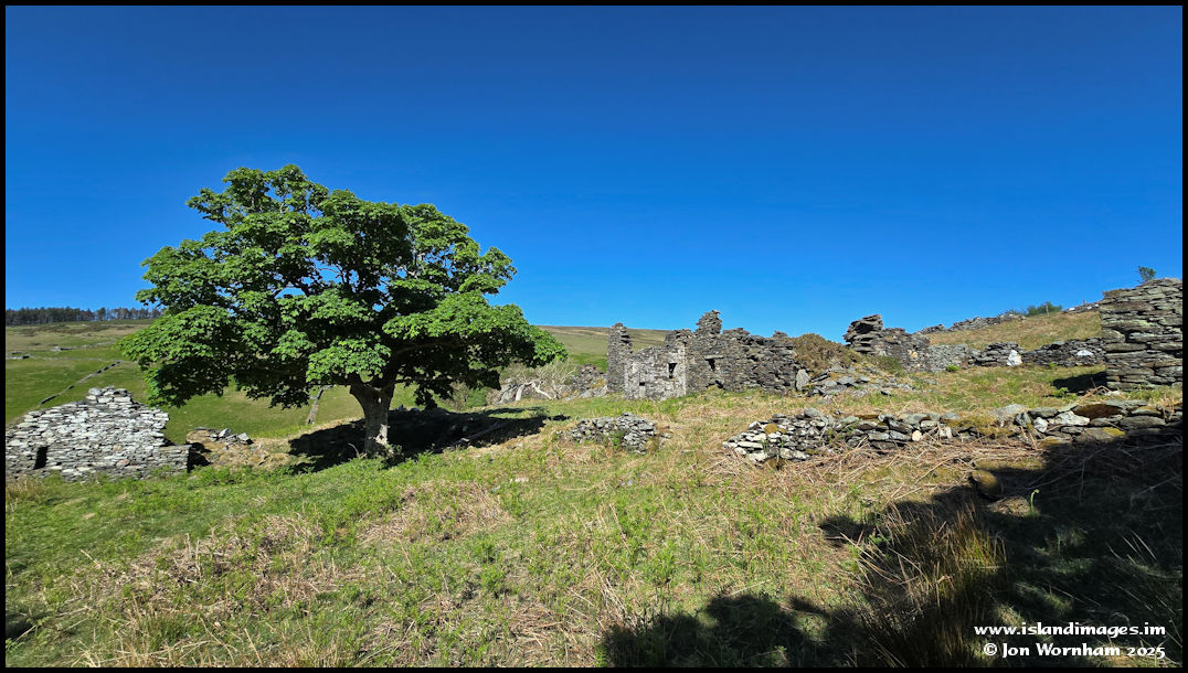 Some of the extensive building remains at Ballaskella and a nice mature tree.