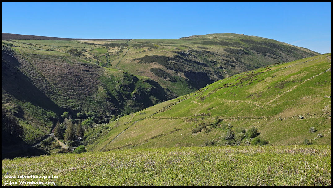 Looking down into Sulby Glen from the edge of the old farmyard at Ballaskella.