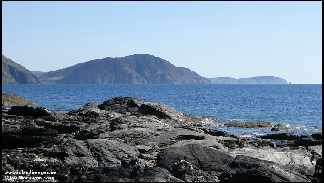 Looking over the rocks and down to Bradda and the Calf of Man. The little inlet on the left is Fleshwick.