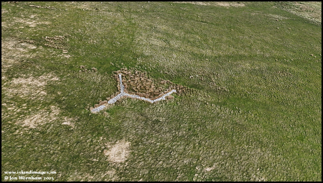 A near vertical view of the possible tryskelion, three legs indeed, but only one has the lower leg section and it's a bit long.