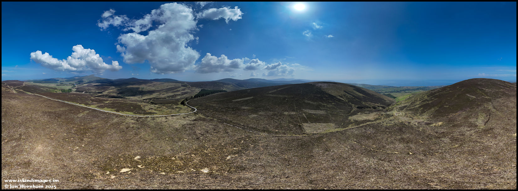 This is the first of eight 360 degree panoramas shot on the walk, and shows Sartfell Glion Kiark and Slieau Freoaghane on one side of the track and the Druidale valley on the other.