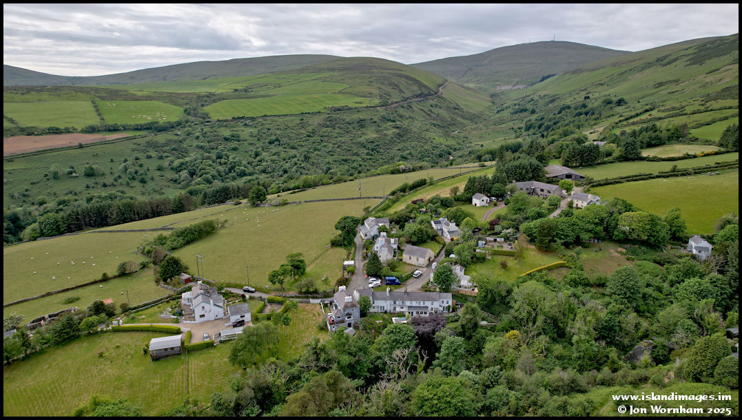 This first view is looking across Agneash and along Laxey Glen with Snaefell in the distance.  The Snaefell Mountain Railway can be seen running up the left hand side of the glen.