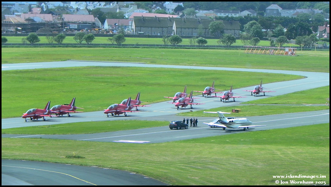 Taxiing in with a bit of attention from the poeple with the business jet!
