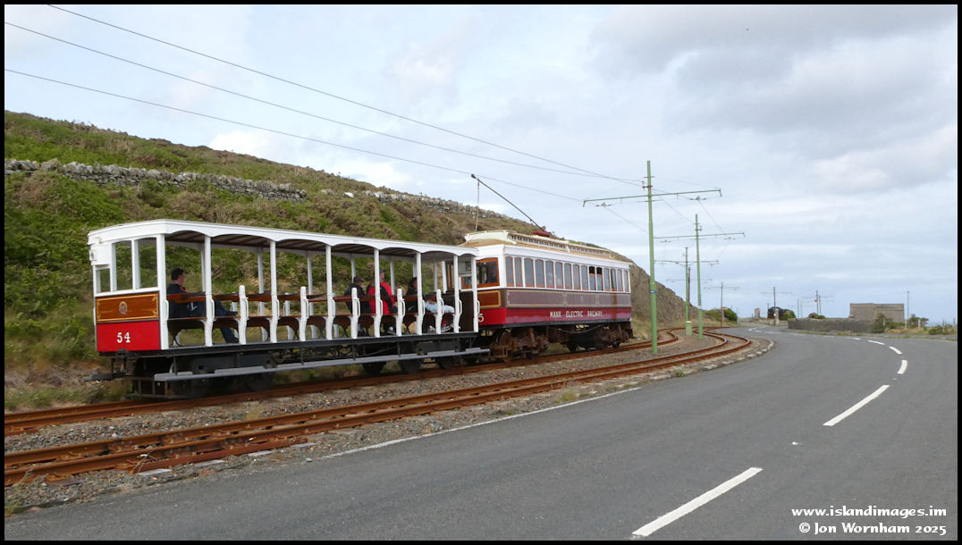 Car No 5 had an even older trailer in tow as No 54 was one of the six original trailers, plus three power cars, delivered to the island in 1893 for the original opening of the line from Douglas to Groudle.