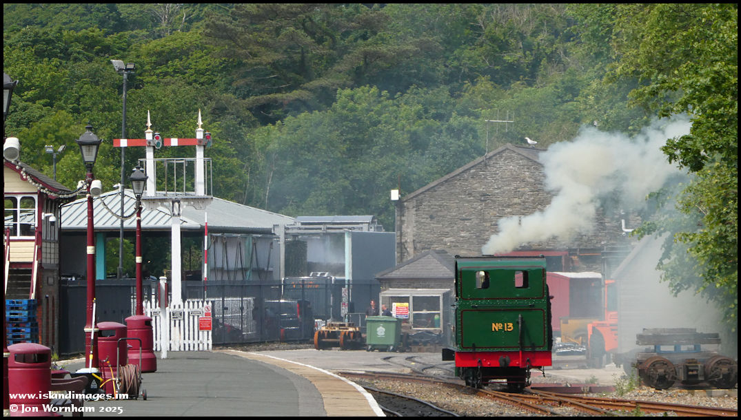 Arriving at Douglas Station around 20 minutes before the train was due to depart, we found No 13 'Kissack' just coming off shed but no carriages! They were apparently having some attention and arrived back shortly afterwards,