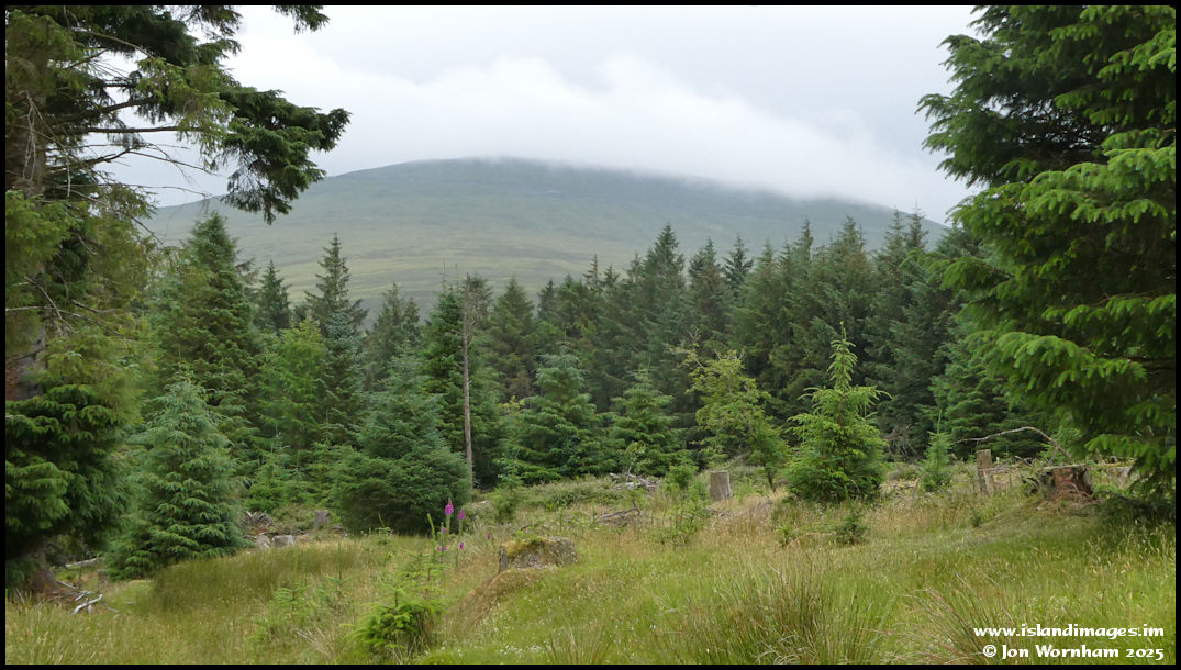 Another gap in the trees gives a view to Snaefell, but the summit is now cloud capped.