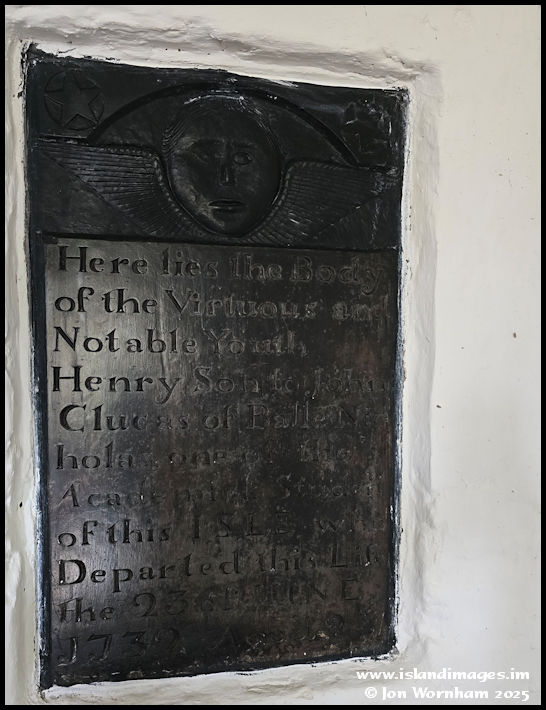 This marker is actually set into the church wall and has a lovely winged face at the top. It's for the 'Virtuous and Notable youth' Henry Clucas, who died aged 23 on the 23rd June 1732.