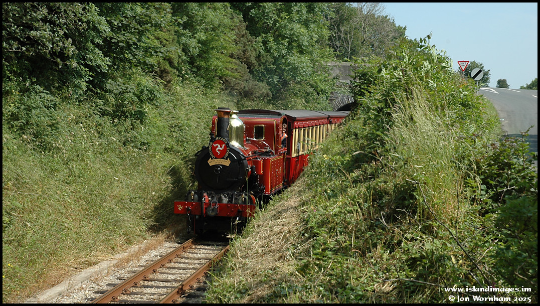 It's Tynwald week in 2006 and the locomotives on the Steam Railway are carrying 'Manx National Week' headboards. Here No 4 'Loch' is pictured at Blackboards on the 4th of July - in the IOM the 5th is the important day!