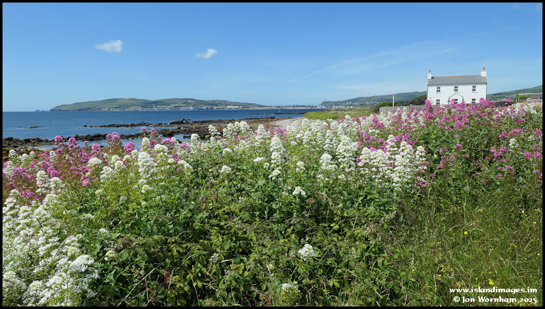 A profusion of Valerian near Pooil Vaaish on the 3rd July 2019. Port St Mary in the distance across Bay ny Carrickey.