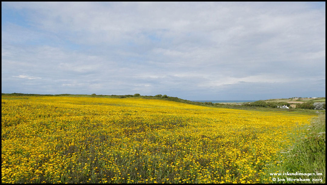 With the sun shining on it, the brightness of the field just hits you as you drive around a corner approaching The Lhen, so I pulled over to take some pictures.