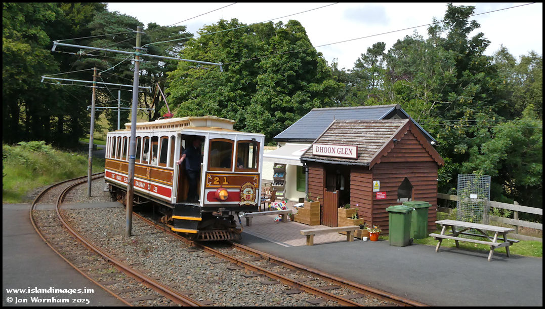 Just as I was parking the car I heard the whistle of an approaching tram and rushed across the road to get a picture of Manx Electric No 21 passing the cafe, which now has new operators as 'Zen at the Glen'.