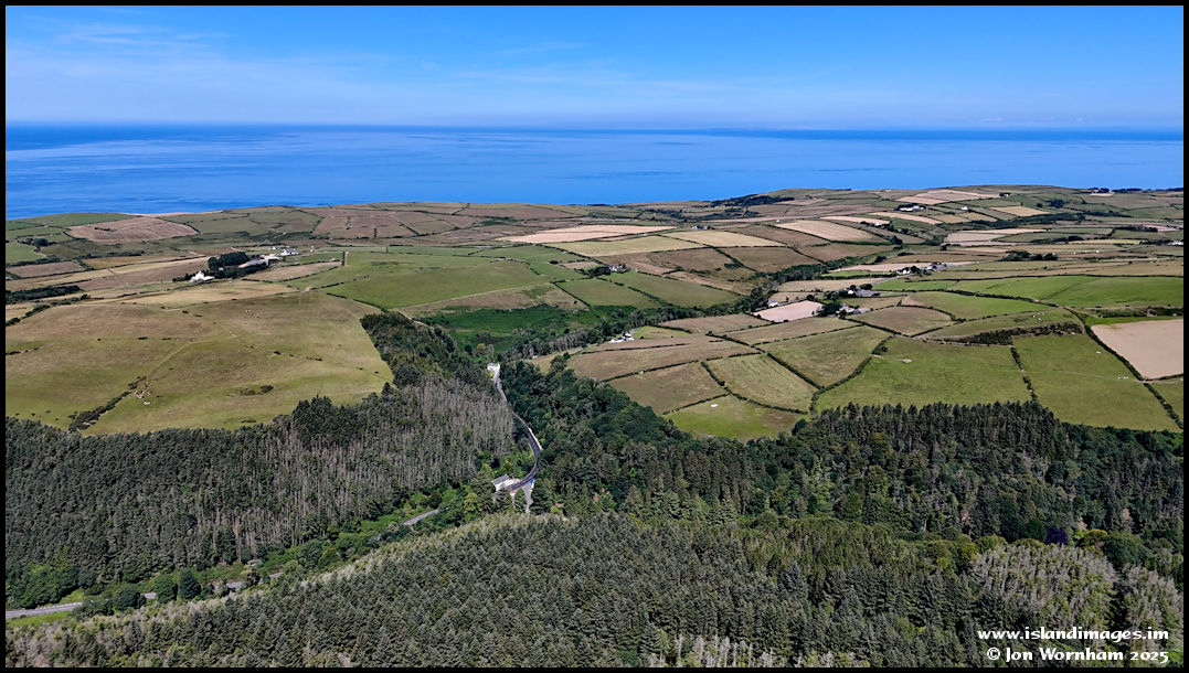Looking down into Glen Helen, where the Rhenass River joins with the River Neb before flowing onwards to enter the sea at Peel.  It's a twisty part of the TT course and you can see a section of the road between Glen Helen and Sarah's Cottage here.