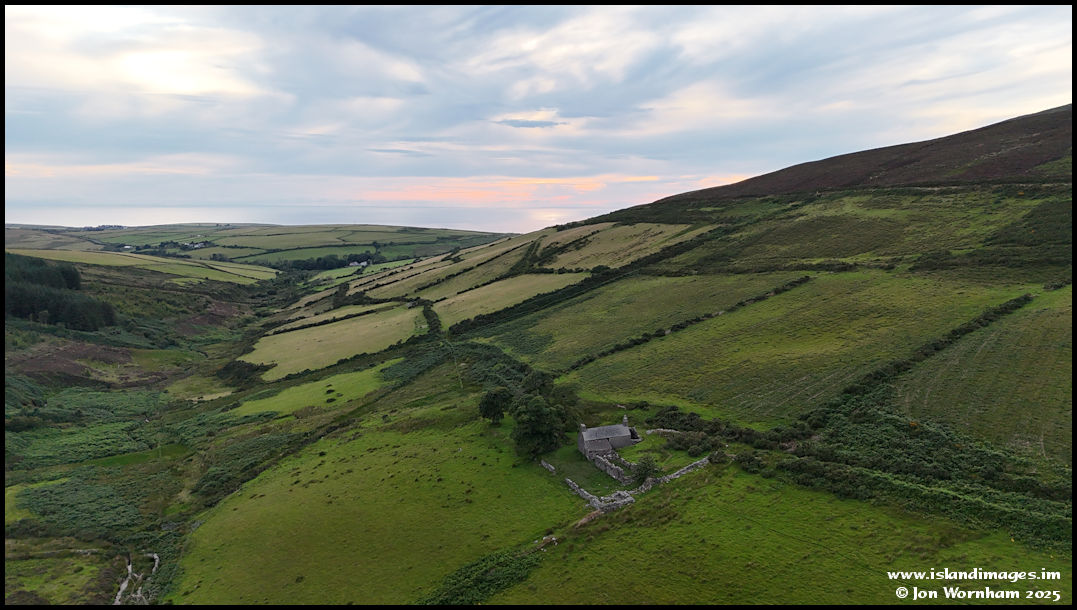 Flying down into the valley towards Cronkdhoo, I don't think that the farm had a single level field! Unlike many of the other upland farms which were abandoned in the 1940s, Cronkdhoo may have been still farmed in the 1960s.