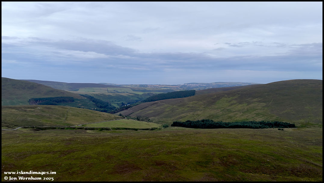 Leaving the tholtan behind now for a more general look around. This is the view over Slieau Maggle, down towards Injebreck with Douglas in the far distance.