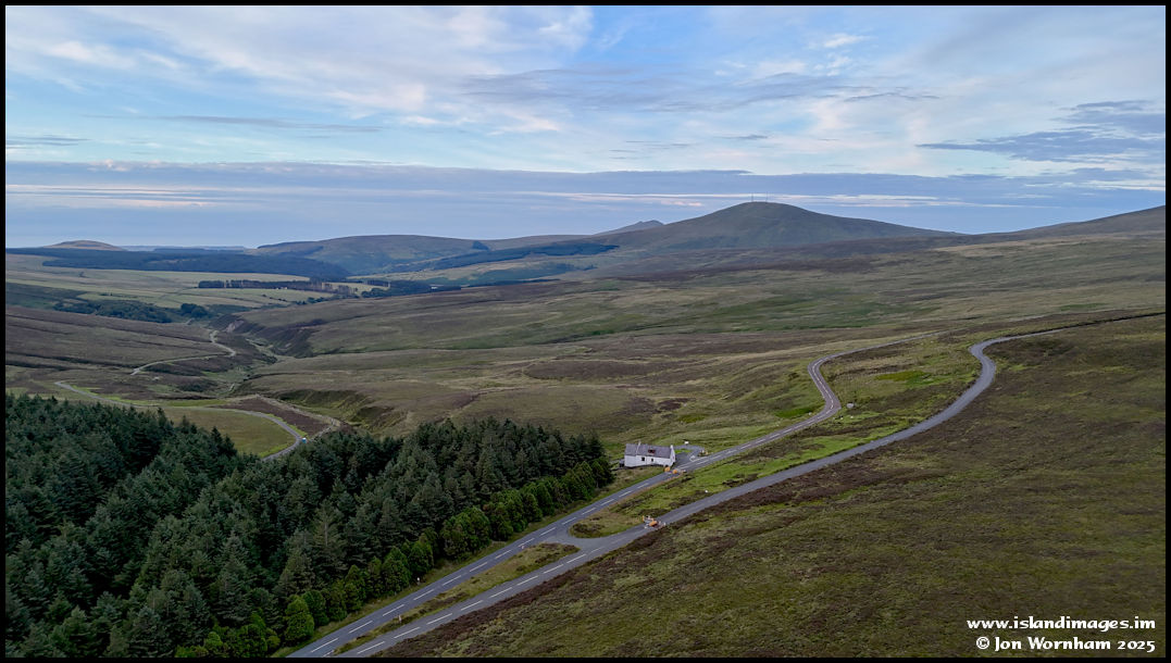 Upland road jucnctions by Brandywell Cottage. Apparently the highest inhabited house on the island at around 1,100 ft above sea level, it is currenty