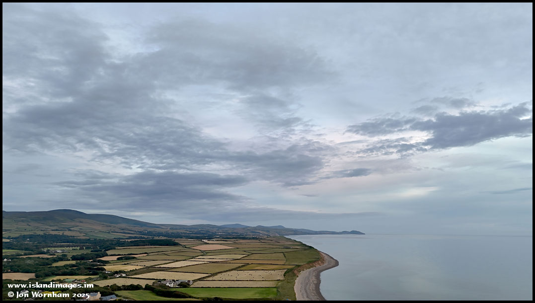 Looking south along the coastline past Orrisdale Head with Peel Hill in the distance.