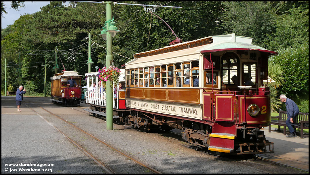Car No 2 with No 14 behind. No 14 will wait for ten minutes after No 2 departs, before it can head onwards to Groudle.