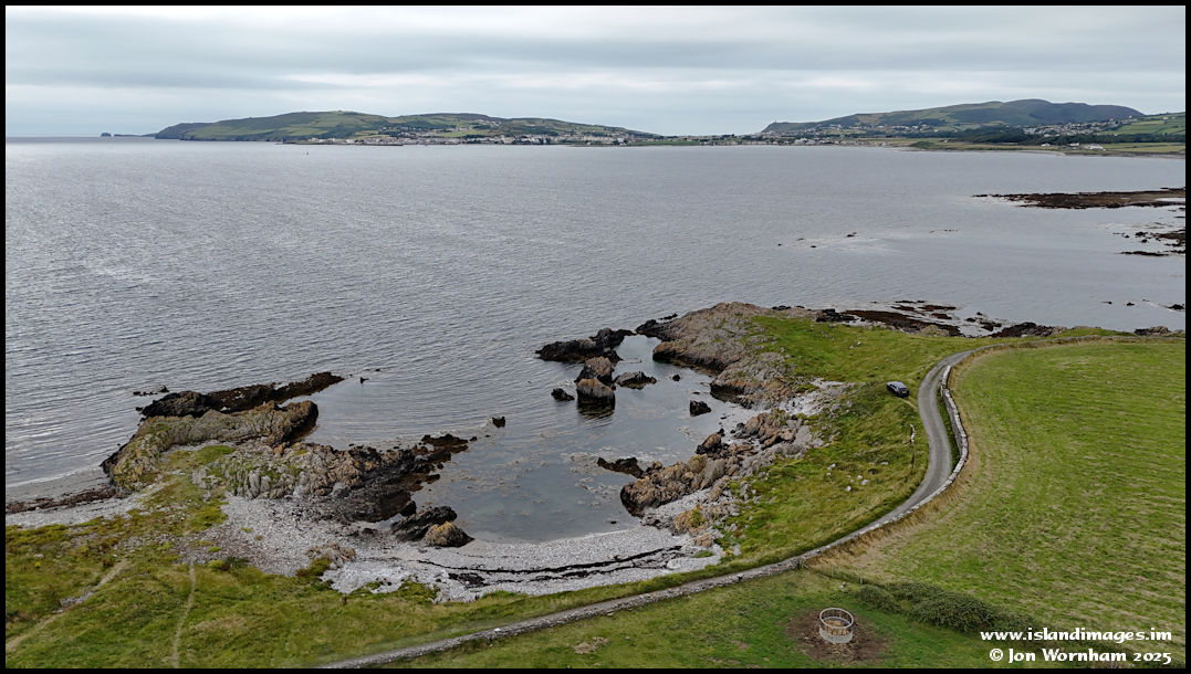 Pulling back for a more general view across the little stoney beach here, then across the bay to Port St Mary.