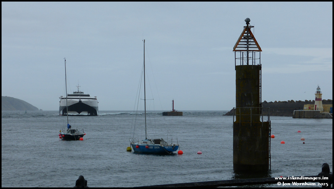 It's the 3rd of August 2012 and the Steam Packed fastcraft 'Manannan' is entering Douglas Harbour