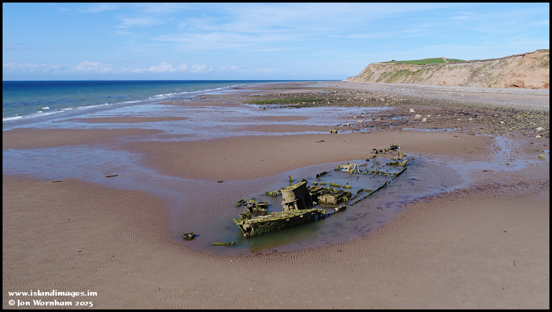 A very low tide at Jurby Head on the 9th of August 2018 enabled this shot of the 'Pasages' shipwreck, using a drone for a slightly elevated view.