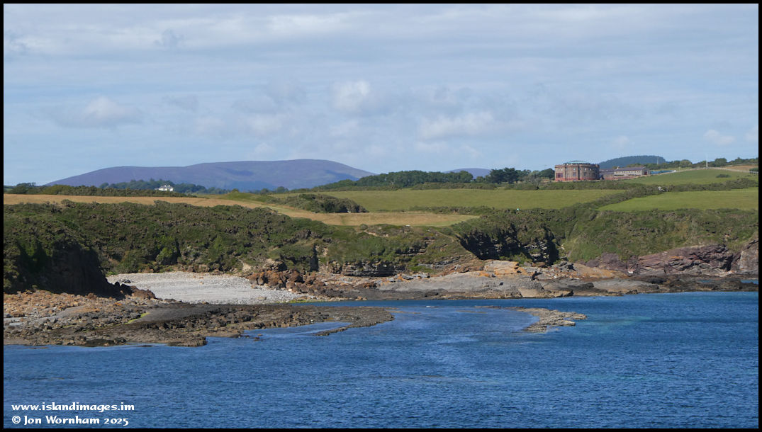 Looking across the water from the area reclaimed from the sea for the Ronaldsway runway extension in 2009, with Santon Gorge on the right but hidden behind the headland.