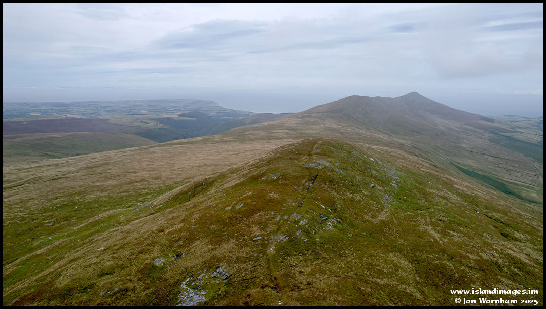 Looking past the summit of Clagh Ouyr and then along the ridgeline to South Barrule. Apart from being overcast, the visibilty wasn't great, muting the colours on the hillsides.