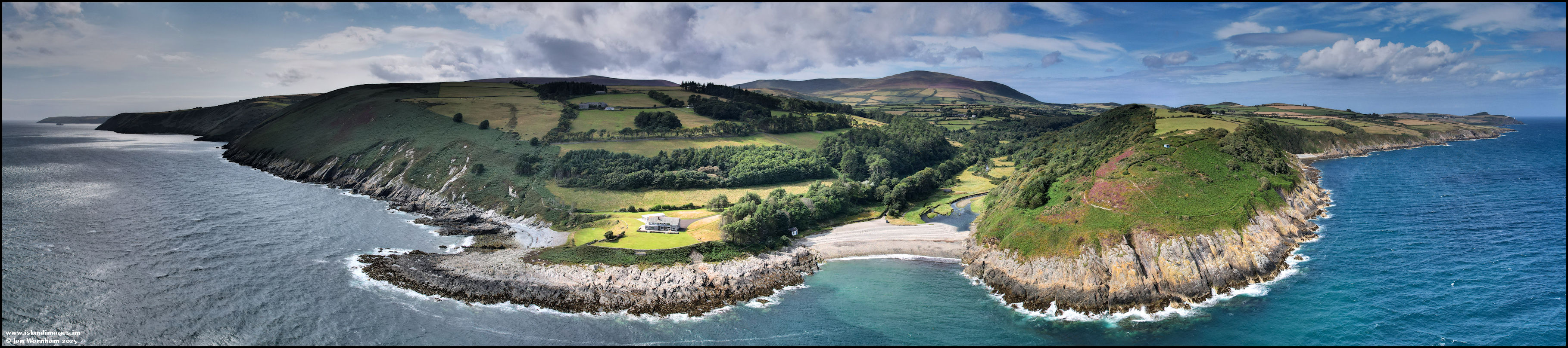 A stitched linear panorama at Port Cornaa, looking from Clay Head over on the left and then to Maughold Head on the right. Great location for the house down there!