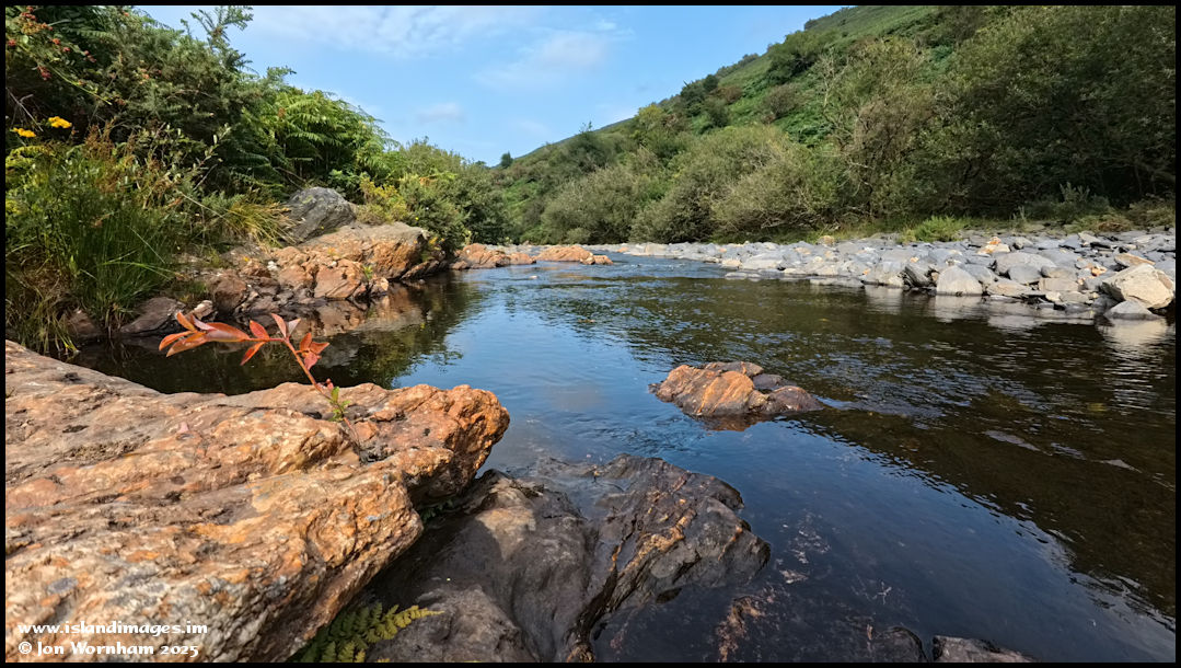 Orange tinted rocks here, possibly stained from peat deposits carried down from the hills.