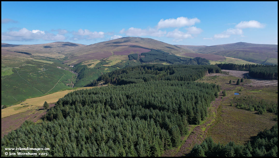 This view is looking across the upper part of Tholt-y-Will Plantation towards Snaefell.