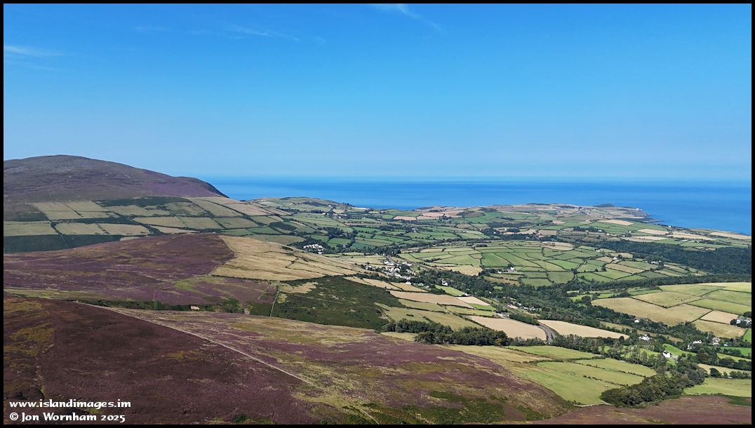 The initial part of my walk was on an unsurfaced track up from where I parked the car, but I'm now on the top of Slieau Ruy and taking the drone into the air for this view across the fields towards Maughold Head.