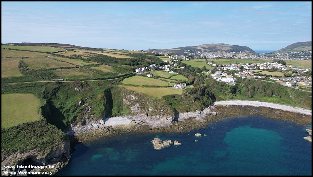 Moving the camera angle around a bit to look across the outskirts of Port St Mary, with the ever spreading Port Erin only a few fields away.