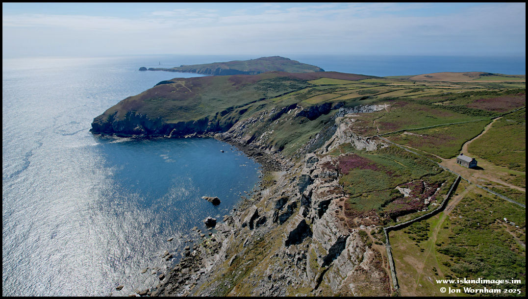 Looking west over The Chasms and to Black Head and the Calf of Man. The building on the right was once the Chasms Cafe, but is now converted into a shelter for visitors (and sheep!)