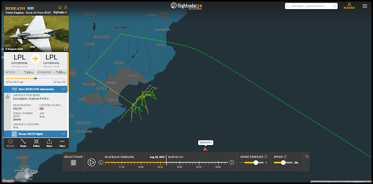 Replay track map of the display from FlightRadar 24. For such a high speed display the aircraft was incredibly agile and the display pilot did a great job keeping in within view at all times.