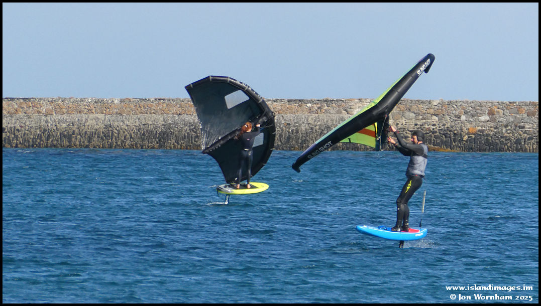 There were a few wingfoilers out on the bay taking advantage of the breeze. The backdrop is the causeway between Langness and St Michael's (Fort) Island.