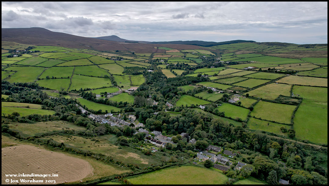 Turning the camera around to look across Lower Foxdale, nestling in the valley below my flying site. From ground level the chimney of 'Snuff the Wind' was prominent on the skyline, but from this height has merged into the background.