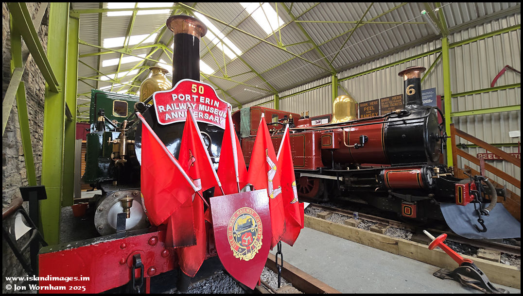 There was time for a quick photo visit to the Railway Museum, here we have IMR No 1 'Sutherland' celebrating 50 years of the museum, with No 6 'Peveril' on the road behind.