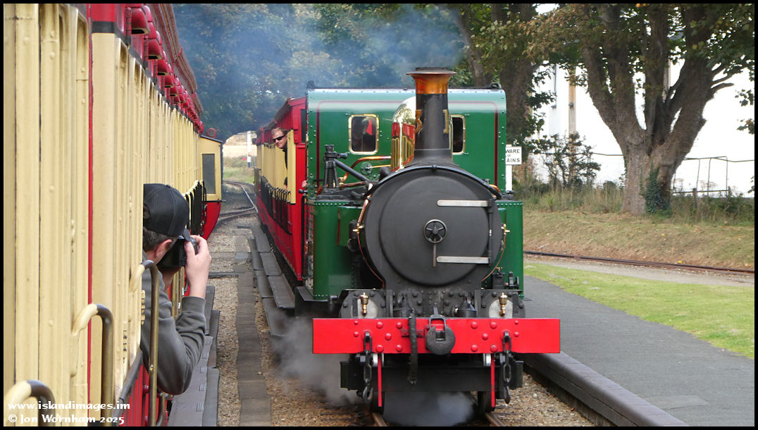Because the train was so full (the front two carriages out of five were reserved for coach tour passengers) I didn't get much opportunity for photos on the way back, by managed this one of 'Kissack' arriving at Castletown.