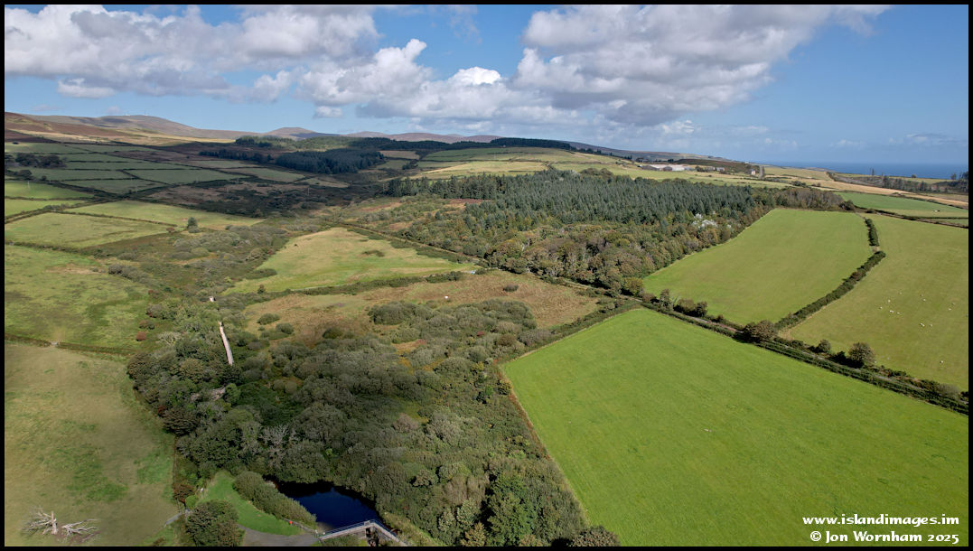At the top end of The Clypse is a little holding reservoir, where valve equipment allows the Groudle River to be diverted around the reservoir when required. Beyond is the Ennemona Plantation, named after a former farm that used to be there.