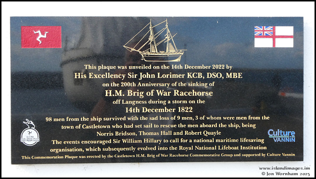 A plaque commemnerating the loss of the warship 'Racehorse' on rocks off Langness in 1822. Loaghtan Books have publsihed an