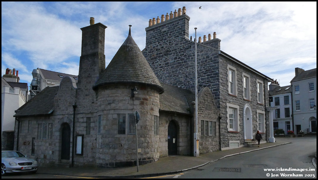 The old Police Station. Designed by M.H. Baillie Scott to blend in with the castle on the opposite side of the road. Constructed in 1901 and used until 2017, it now belongs to Manx National Heritage and is a listed building.